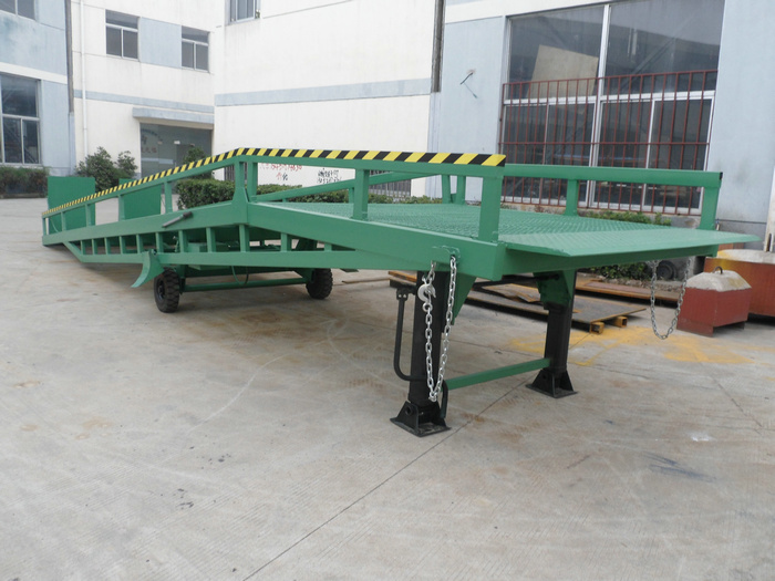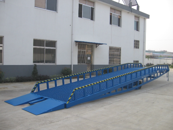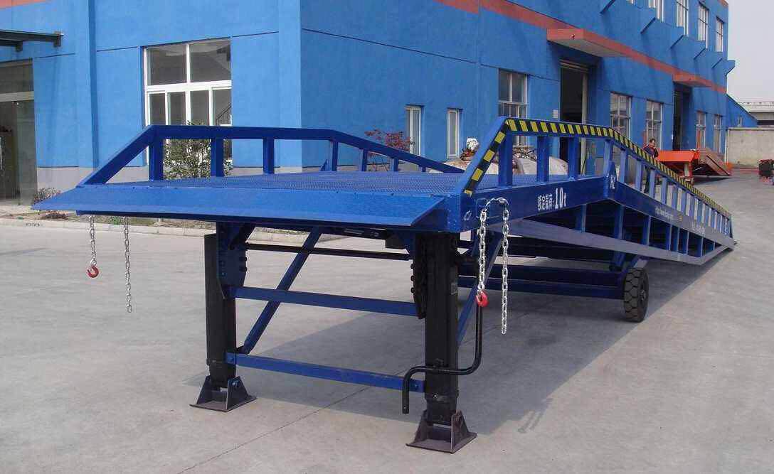 移動式液壓登車橋是與叉車配合使用的貨物裝 卸專用輔助設備。有了它,叉車能直接從地面駛入汽車車廂內部進行 批量裝卸作業。